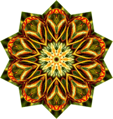 A design with approximate rotational symmetry formed from a drawing of lizards by Ernst Haeckel. The design was drawn as a PNG in Paint.net by repeated rotation of wedges of the drawing around a centre point. It was vectorized in Vector Magic