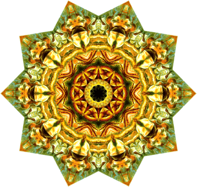 A design with approximate rotational symmetry formed from a drawing of lizards by Ernst Haeckel. The design was drawn as a PNG in Paint.net by repeated rotation of wedges of the drawing around a centre point. It was vectorized in Vector Magic