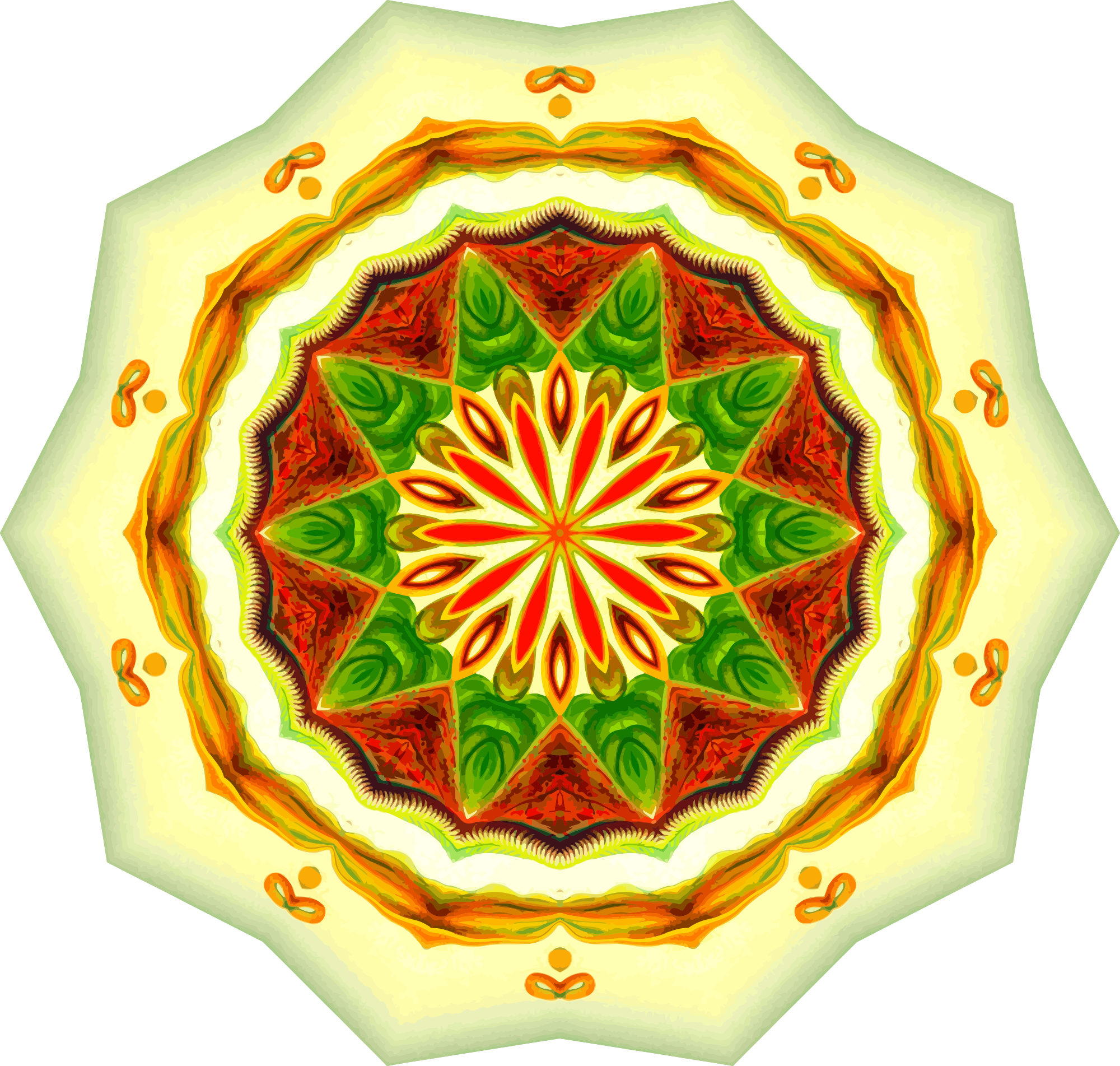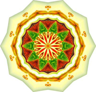 A design with approximate rotational symmetry formed from a drawing of pitcher plants by Ernst Haeckel. The design was drawn as a PNG in Paint.net by repeated rotation of wedges of the drawing around a centre point. It was vectorized in Vector Magic