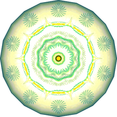 A design with approximate rotational symmetry formed from a drawing of aquatic invertebrate animals by Ernst Haeckel. The design was drawn as a PNG in Paint.net by repeated rotation of wedges of the drawing around a centre point. It was vectorized in Vector Magic