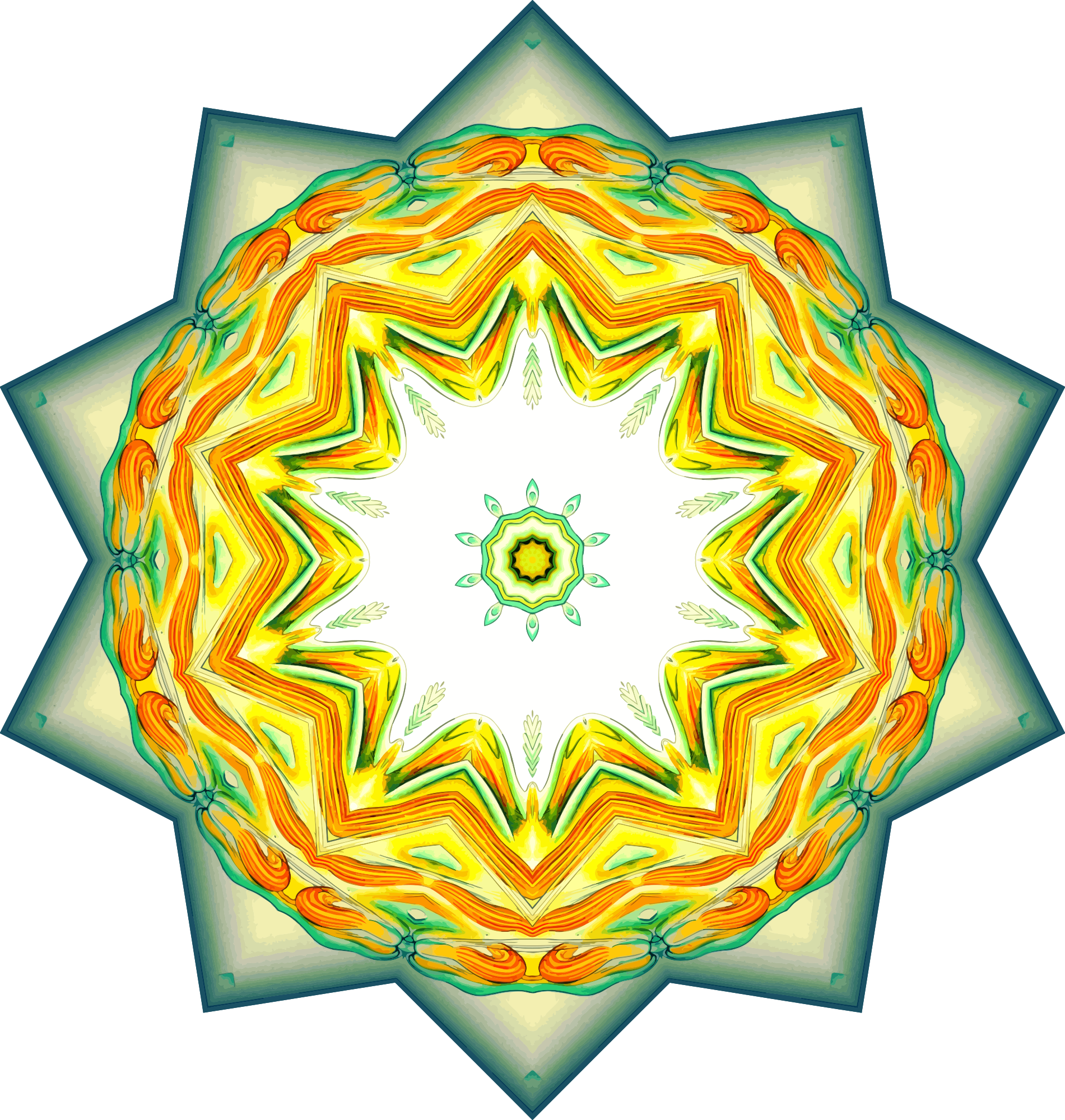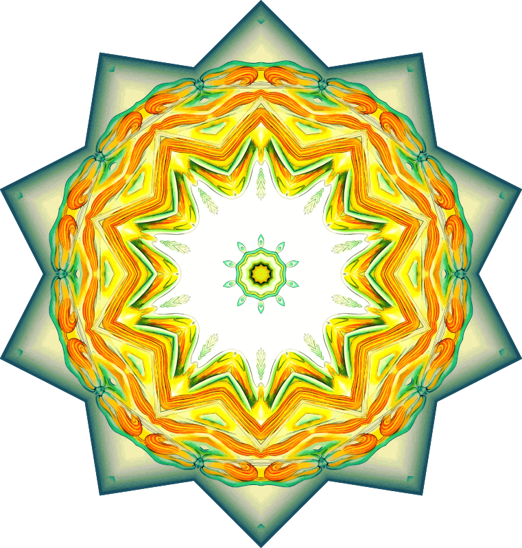 A design with approximate rotational symmetry formed from a drawing of aquatic invertebrate animals by Ernst Haeckel. The design was drawn as a PNG in Paint.net by repeated rotation of wedges of the drawing around a centre point. It was vectorized in Vector Magic