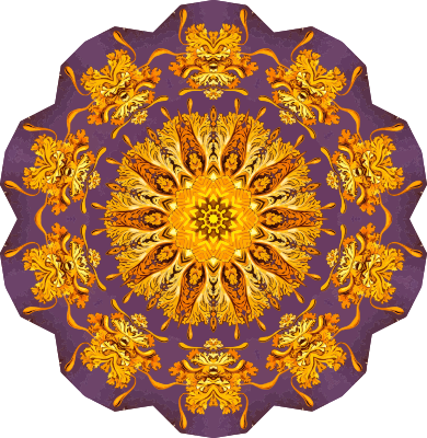 A design with approximate rotational symmetry formed from a drawing of jellyfish by Ernst Haeckel. The design was drawn as a PNG in Paint.net by repeated rotation of wedges of the drawing around a centre point. It was vectorized in Vector Magic