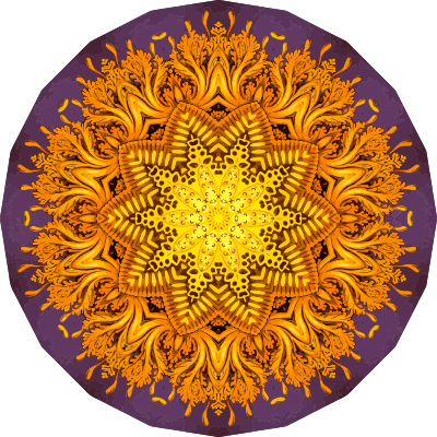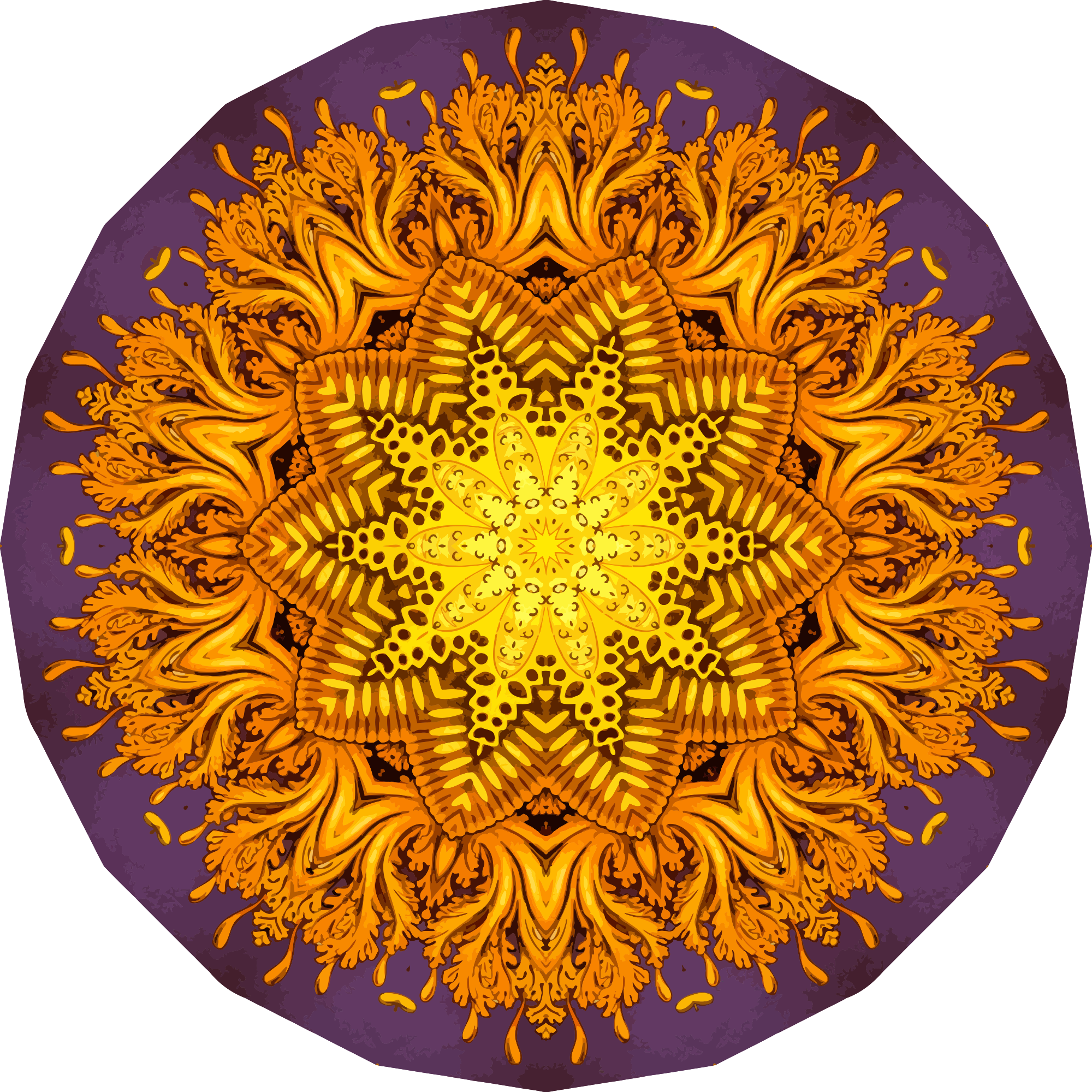 A design with approximate rotational symmetry formed from a drawing of jellyfish by Ernst Haeckel. The design was drawn as a PNG in Paint.net by repeated rotation of wedges of the drawing around a centre point. It was vectorized in Vector Magic