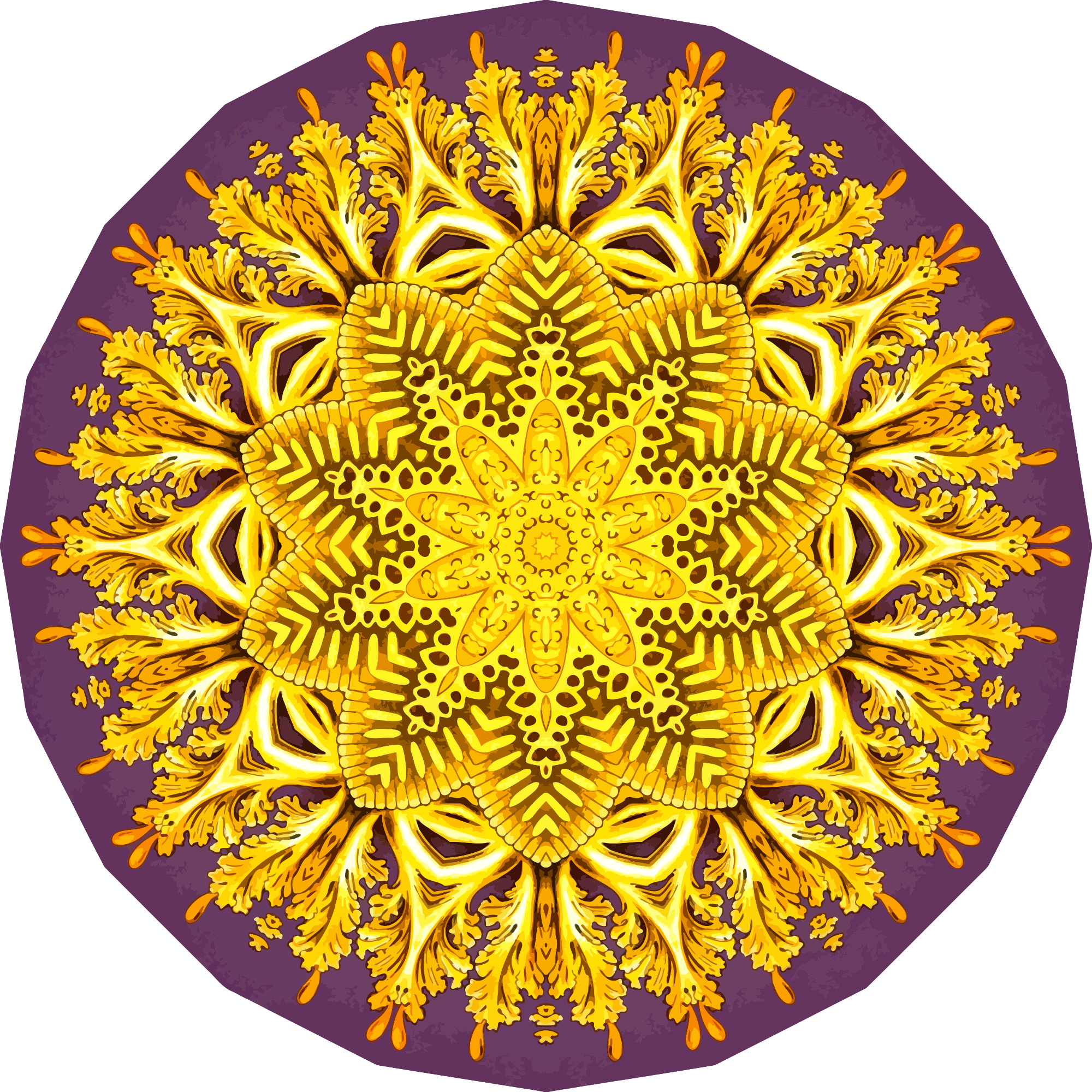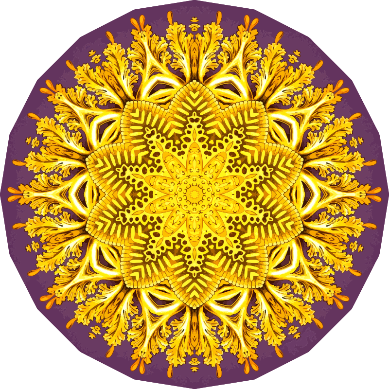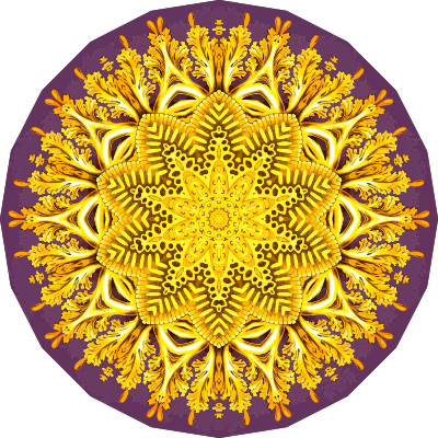 A design with approximate rotational symmetry formed from a drawing of jellyfish by Ernst Haeckel. The design was drawn as a PNG in Paint.net by repeated rotation of wedges of the drawing around a centre point. It was vectorized in Vector Magic