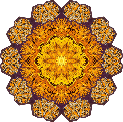 A design with approximate rotational symmetry formed from a drawing of jellyfish by Ernst Haeckel. The design was drawn as a PNG in Paint.net by repeated rotation of wedges of the drawing around a centre point. It was vectorized in Vector Magic