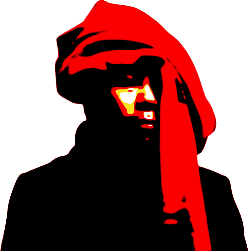 A red sweater that is wearing on his headLike the turban