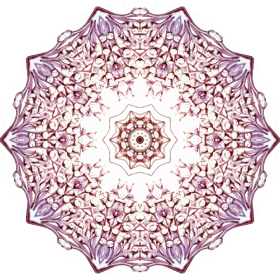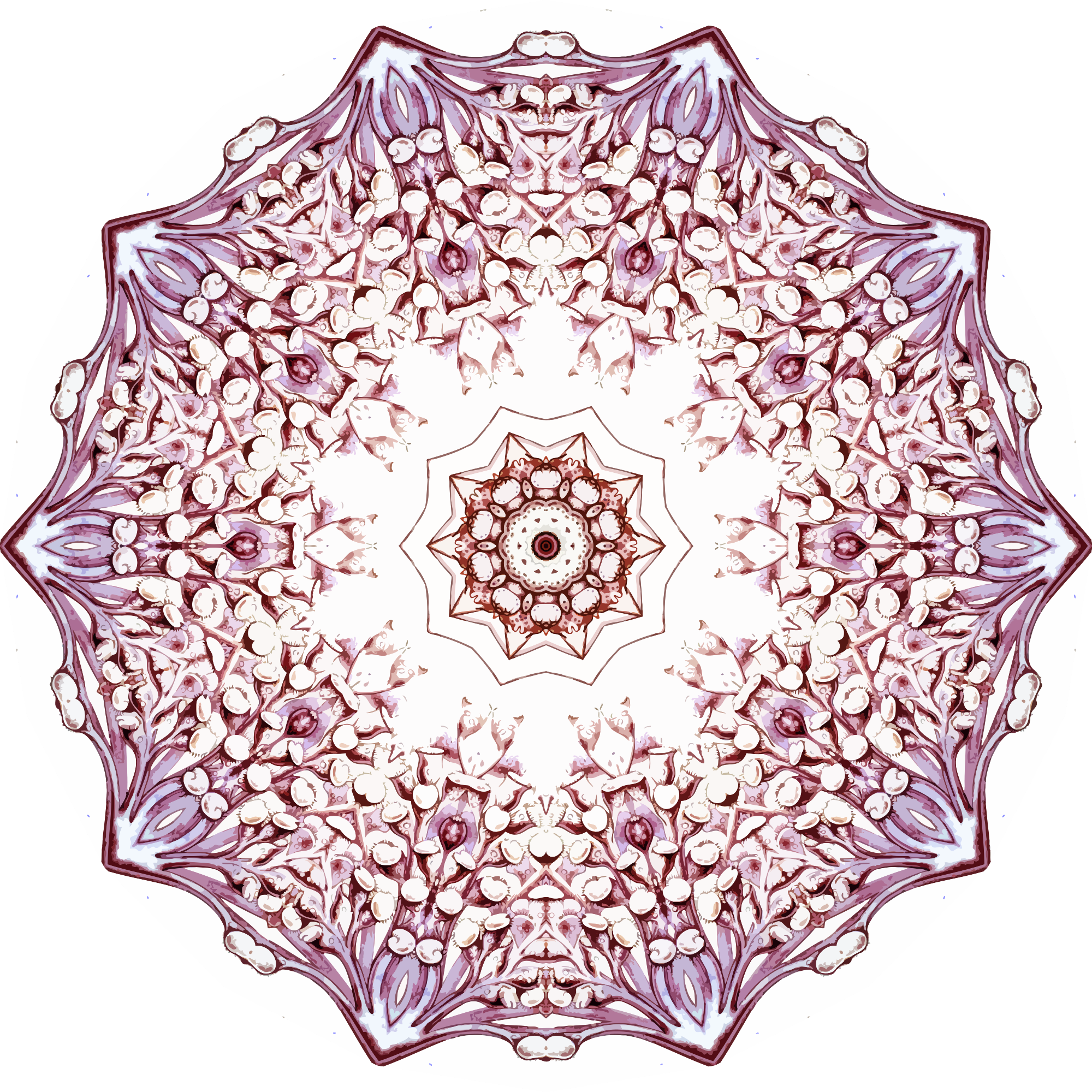 A design with approximate rotational symmetry formed from a drawing of protozoans by Ernst Haeckel. The design was drawn as a PNG in Paint.net by repeated rotation of wedges of the drawing around a centre point. It was vectorized in Vector Magic