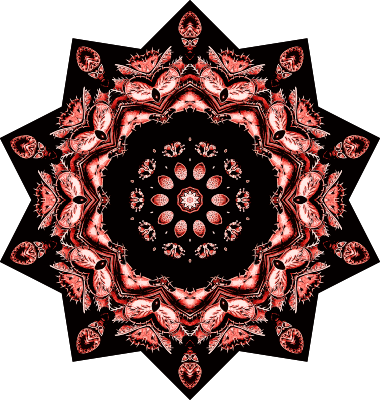 A design with approximate rotational symmetry formed from a drawing of aquatic invertebrate animals by Ernst Haeckel. The design was drawn as a PNG in Paint.net by repeated rotation of wedges of the drawing around a centre point. It was vectorized in Vector Magic