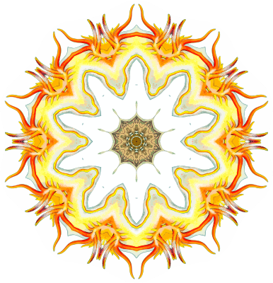 A design with approximate rotational symmetry formed from a drawing of aquatic gastropod molluscs by Ernst Haeckel. The design was drawn as a PNG in Paint.net by repeated rotation of wedges of the drawing around a centre point. It was vectorized in Vector Magic