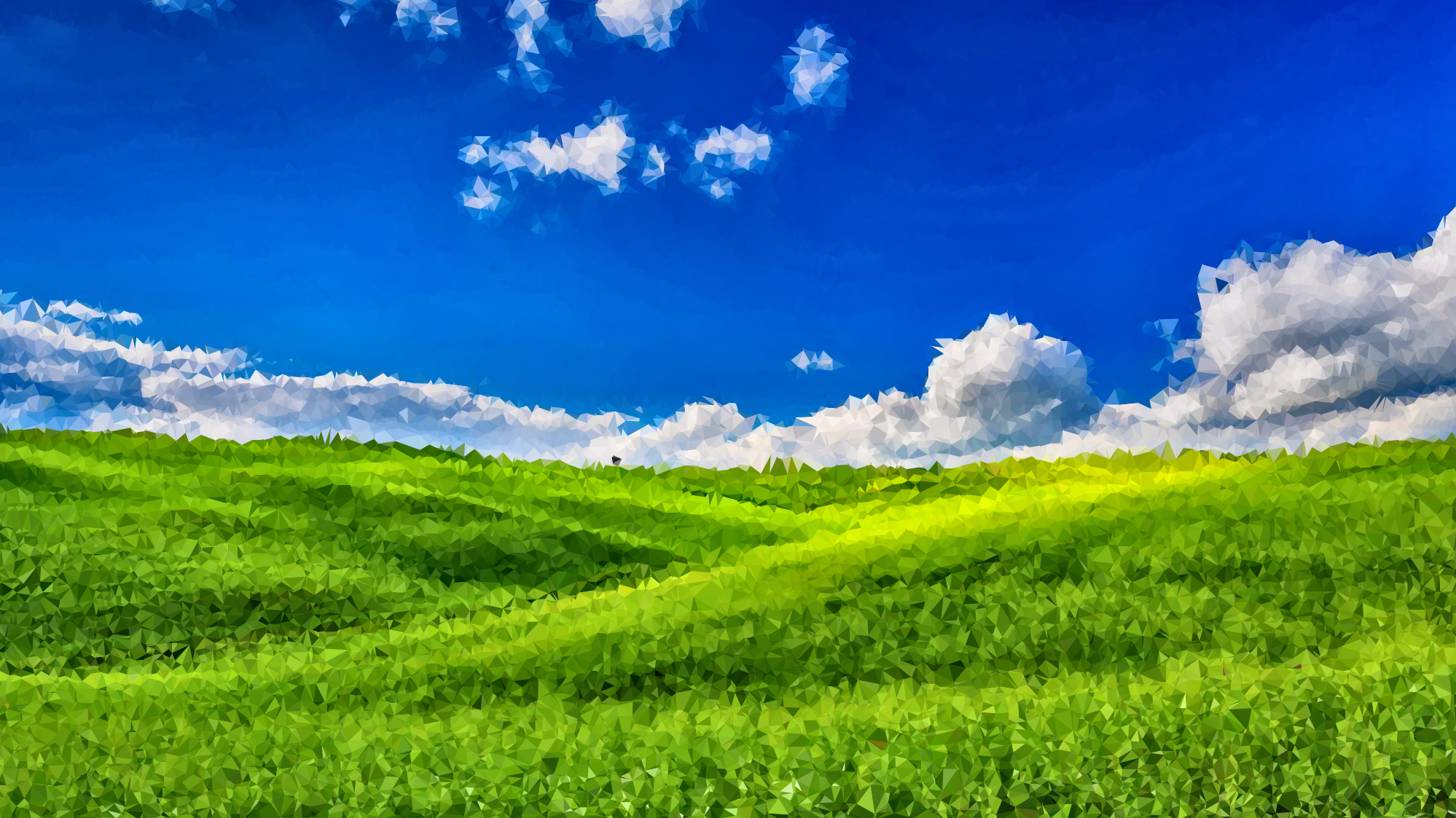 High Poly Green Meadow derived from : https://pixabay.com/en/meadow-grassy-clouds-blue-sky-sun-1239783/