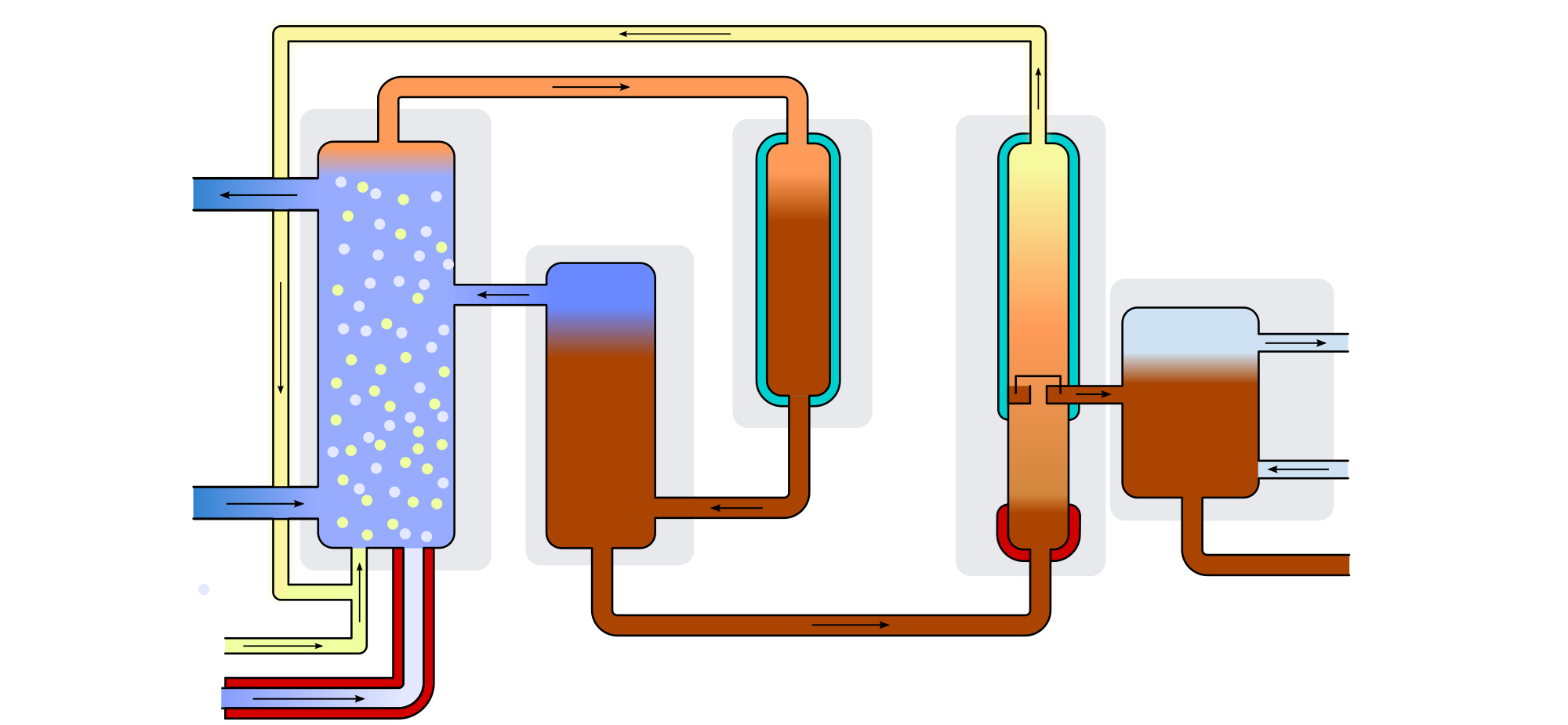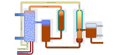 Skizze zur industriellen Produktion von Brom aus bromidhaltigem Meerwasser.