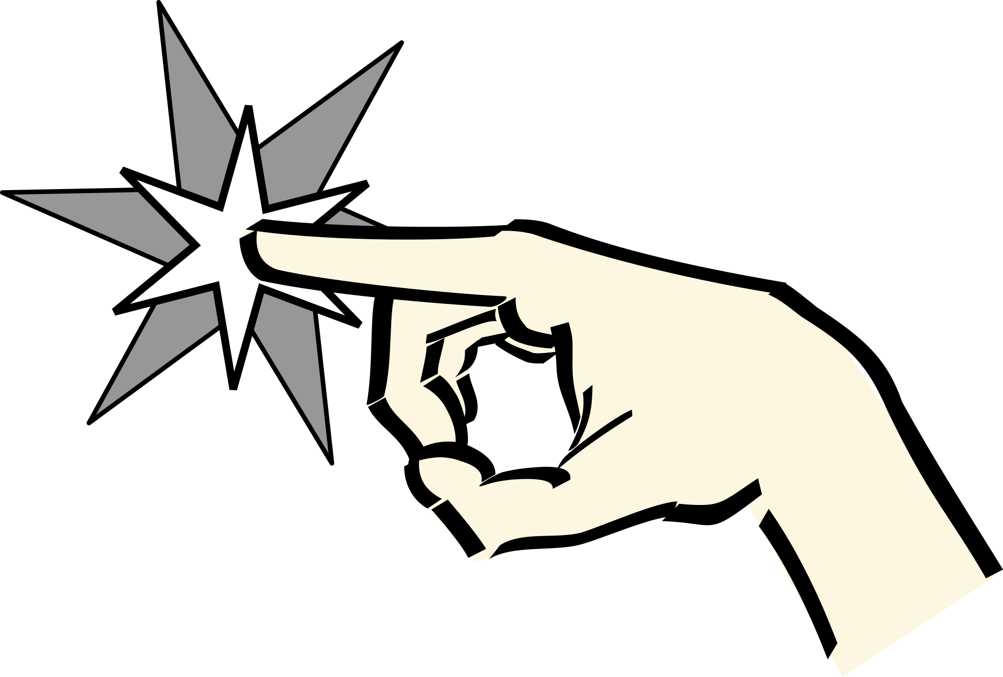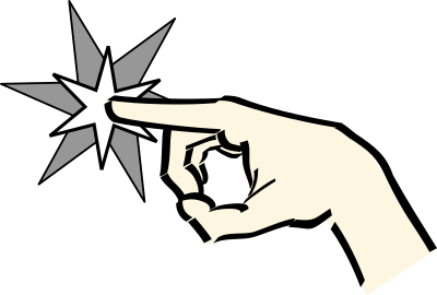 A pointing finger hand to the left with a star.