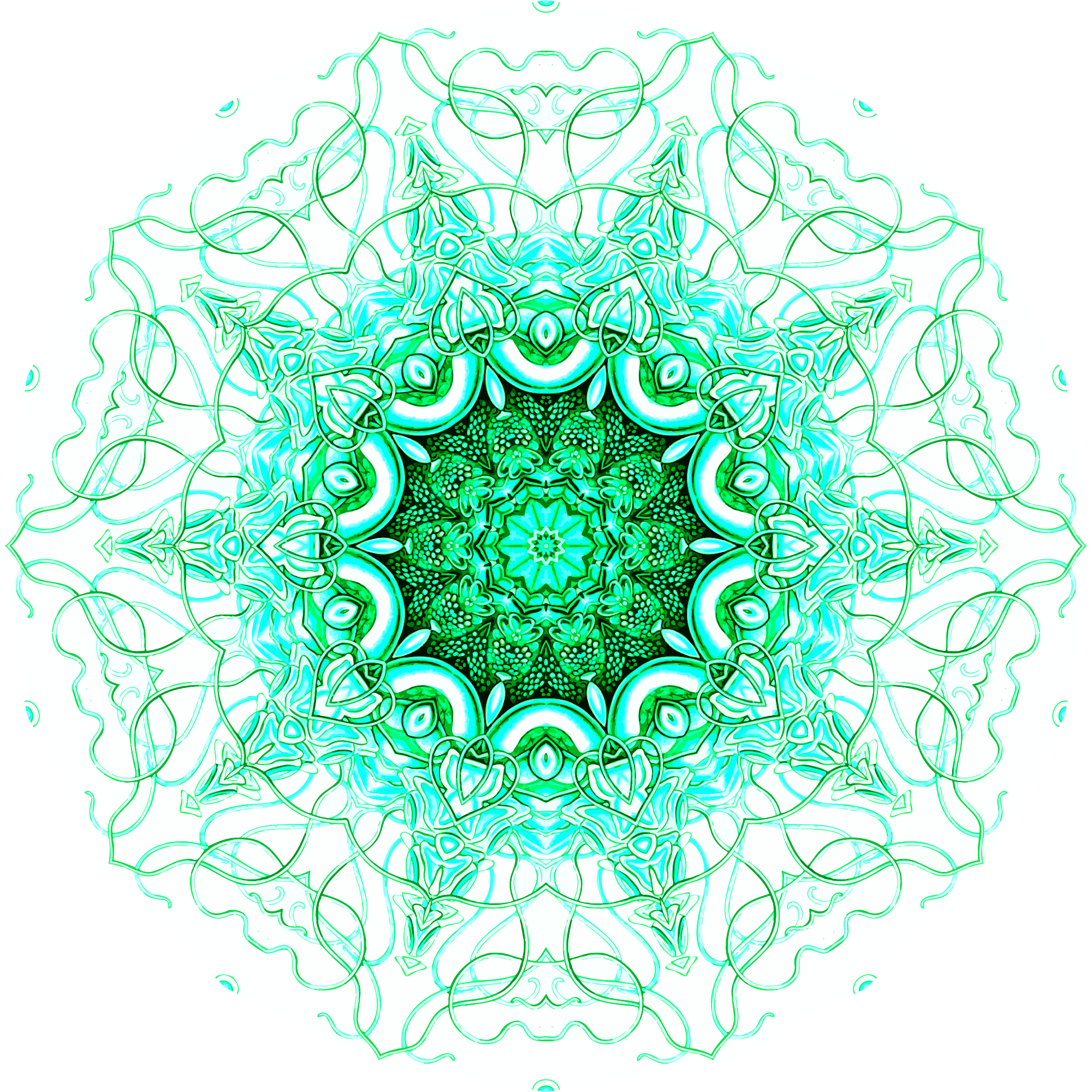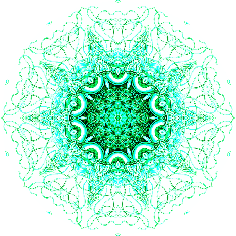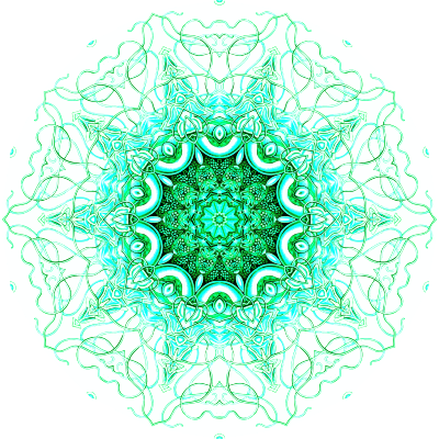 A design with approximate rotational symmetry formed from a drawing of hydrozoa by Ernst Haeckel. The design was drawn as a PNG in Paint.net by repeated rotation of wedges of the drawing around a centre point. It was vectorized in Vector Magic