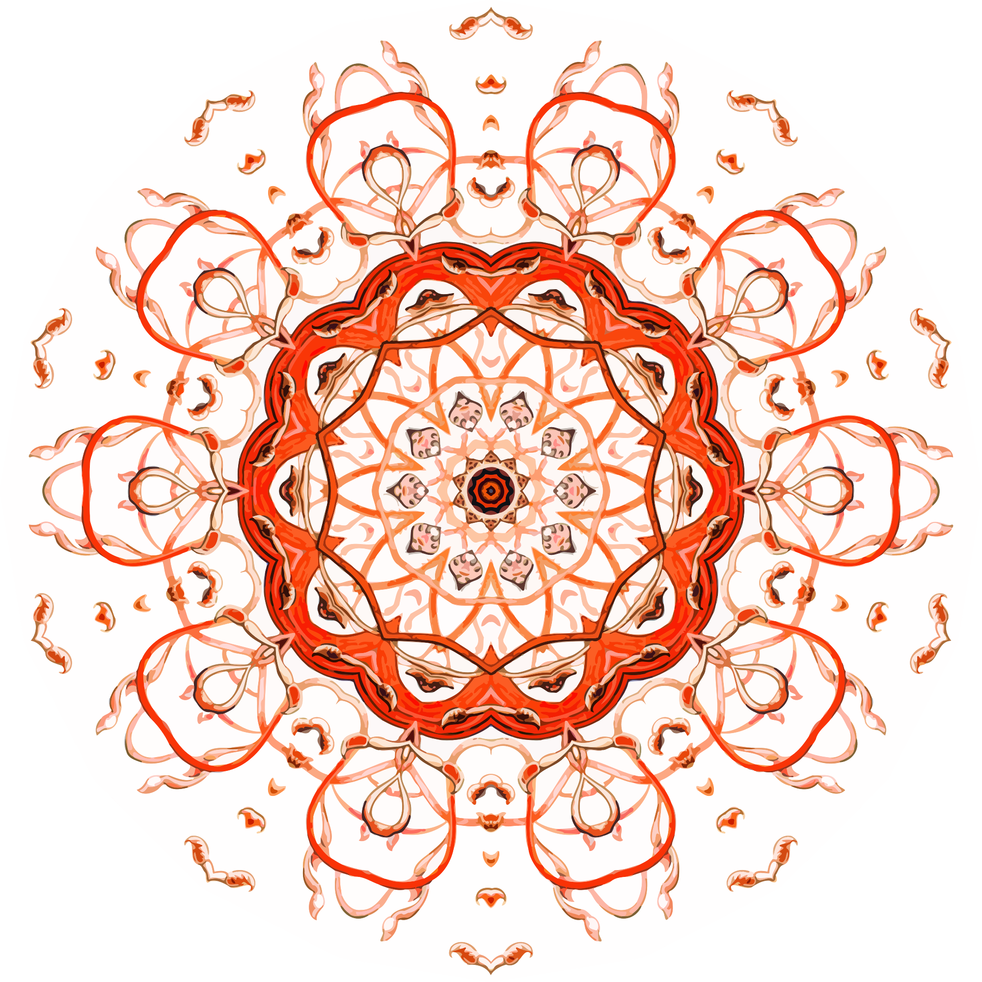 A design with approximate rotational symmetry formed from a drawing of hydrozoa by Ernst Haeckel. The design was drawn as a PNG in Paint.net by repeated rotation of wedges of the drawing around a centre point. It was vectorized in Vector Magic