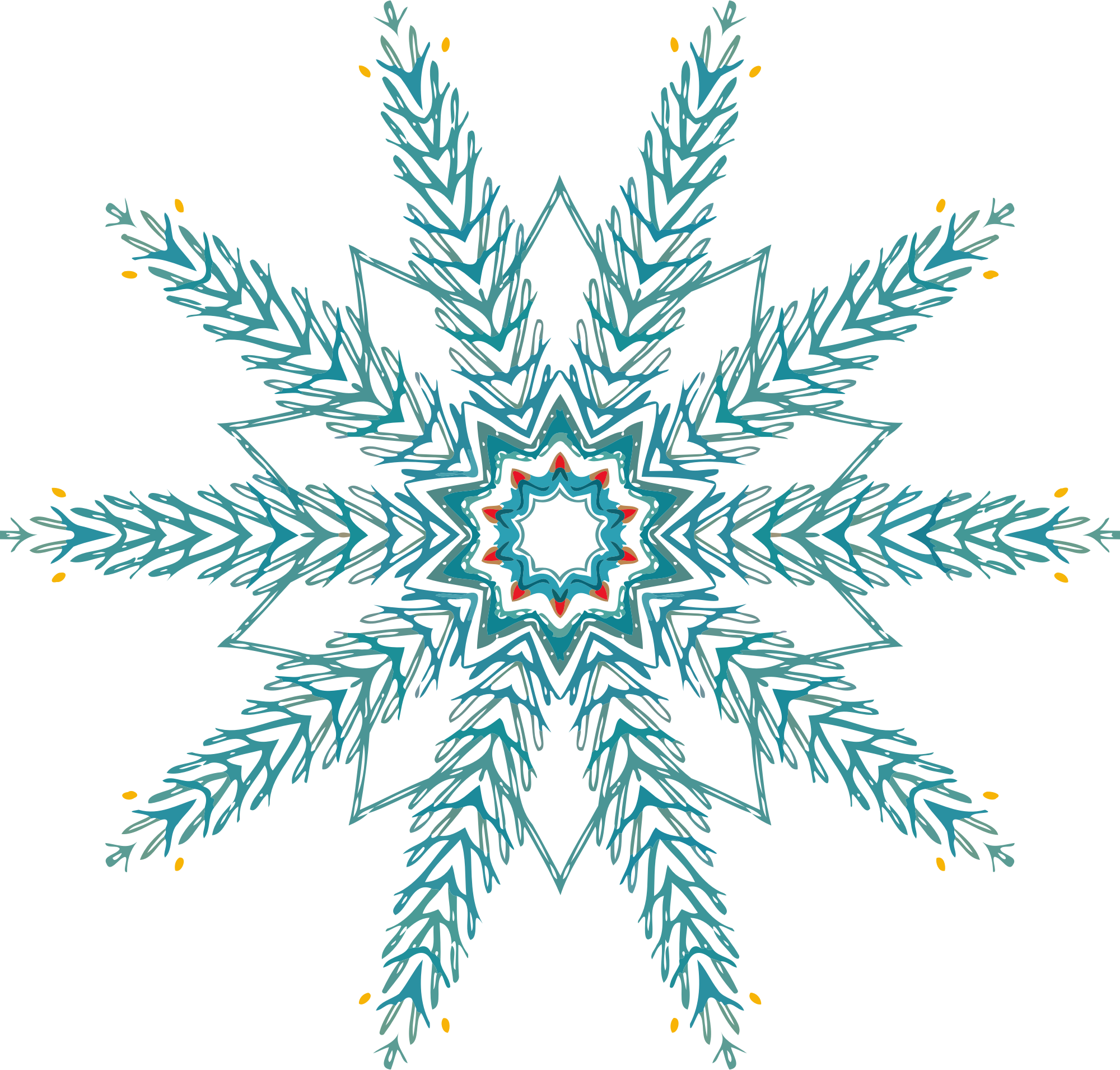 A design with approximate rotational symmetry formed from a drawing of crustaceans by Ernst Haeckel. The design was drawn as a PNG in Paint.net by repeated rotation of wedges of the drawing around a centre point. It was vectorized in Vector Magic