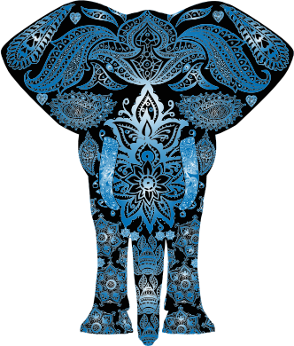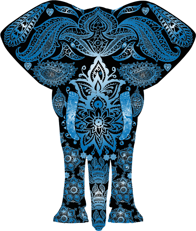 Blue Floral Pattern Elephant