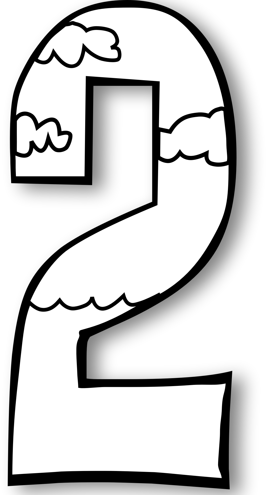 Creation Day 2 - number with clouds and water for coloring.