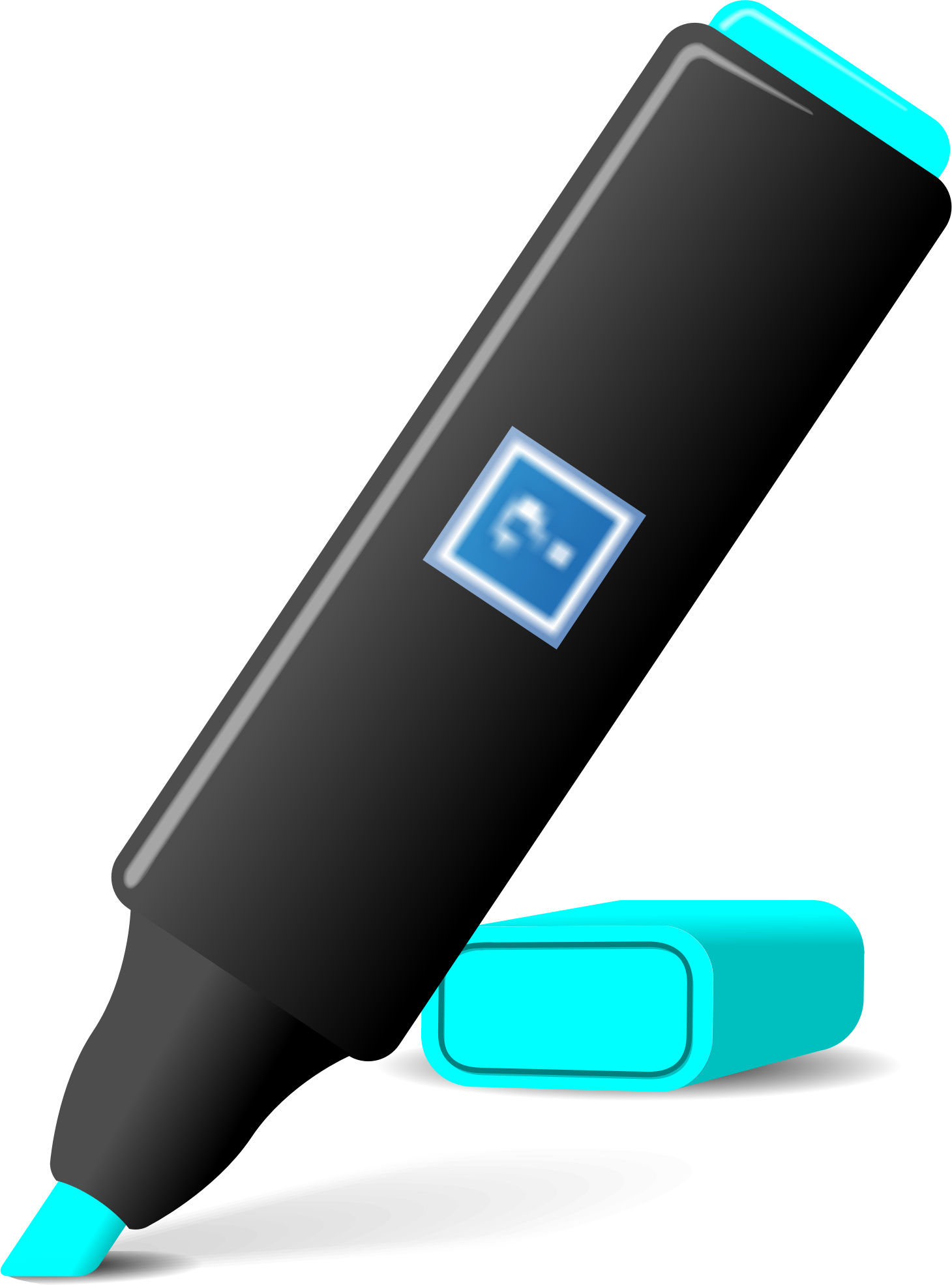 Neon blue/cyan marker with a customizable logo