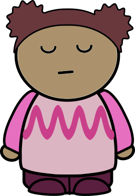 Front view of disdainful pig-tailed girl in purple and pink.