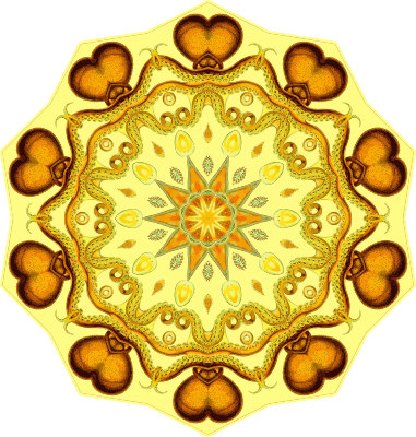 A design with approximate rotational symmetry formed from a drawing of octopus by Ernst Haeckel. The design was drawn as a PNG in Paint.net by repeated rotation of wedges of the drawing around a centre point. It was vectorized in Vector Magic