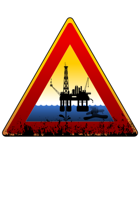 a danger sign with a offshore platform