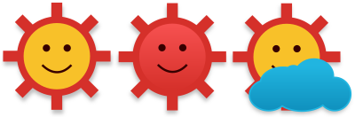 weather icons: sunny, hot, partially sunny and cloudy