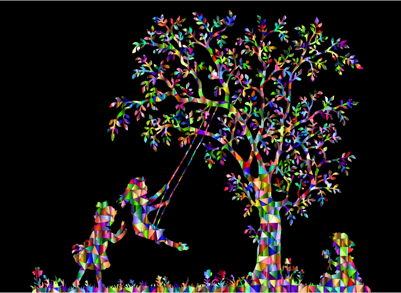 Low Poly Chromatic 3 Girls Playing Vintage Silhouette