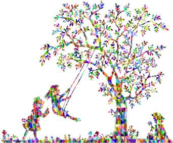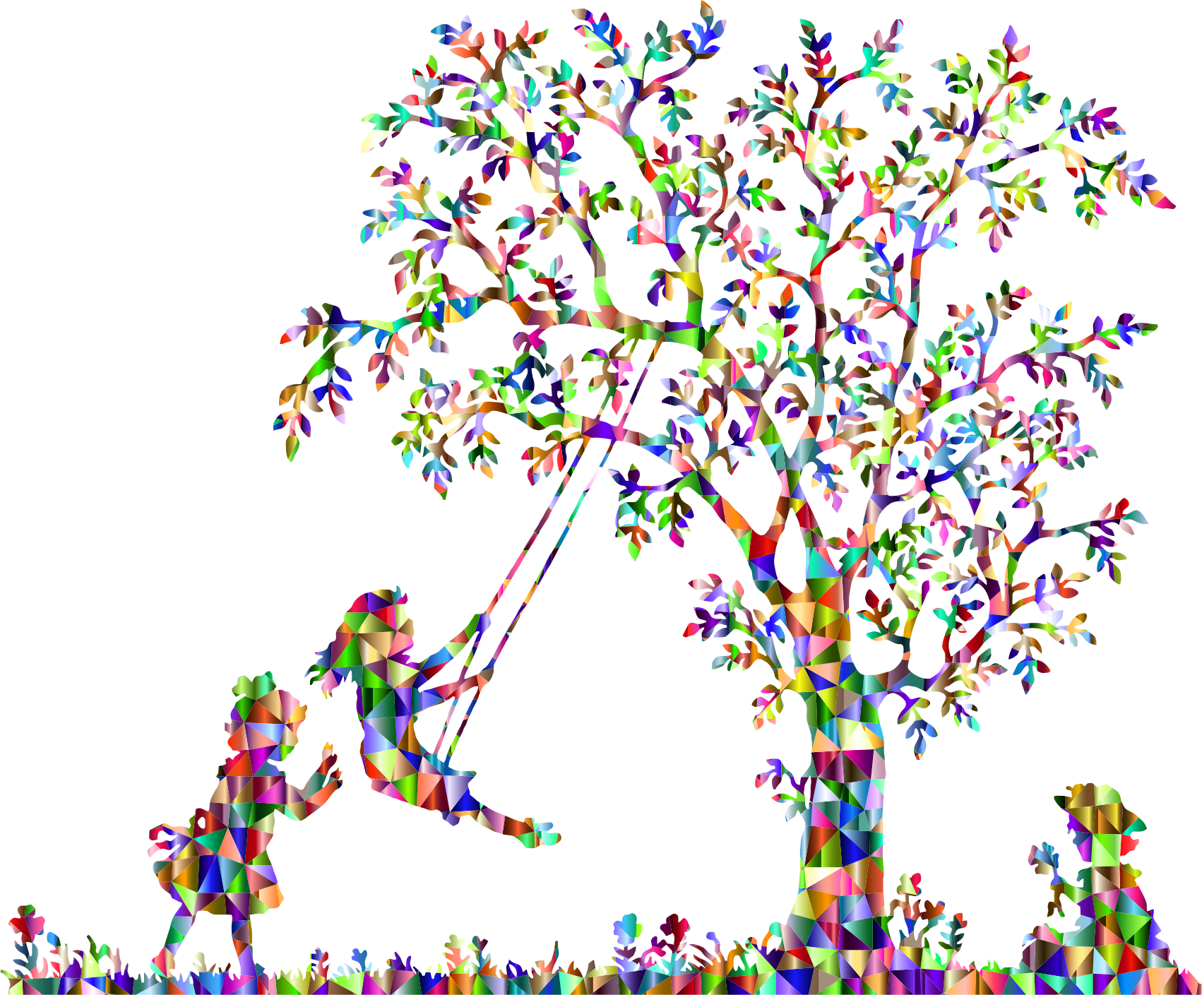 - 3 Art Children Chromatic Colorful Female Flowers Geometric Girls Kids Low Poly Plant Playing Polygon Prismatic Rainbow Swing Three Tree Triangles Vegetation Vintage remix+244109