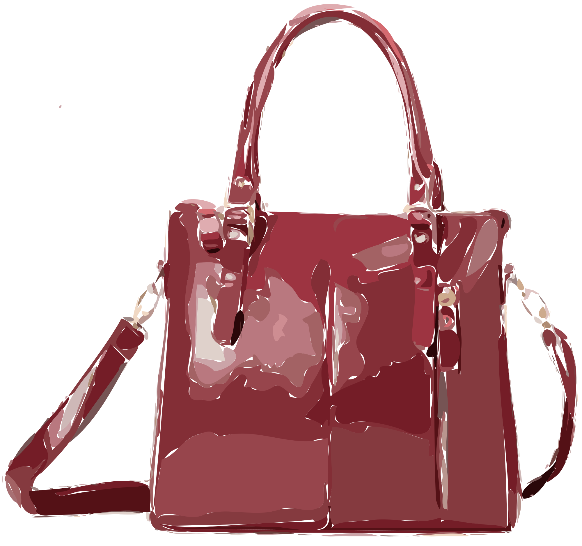 A dark red bag with a logo removed.