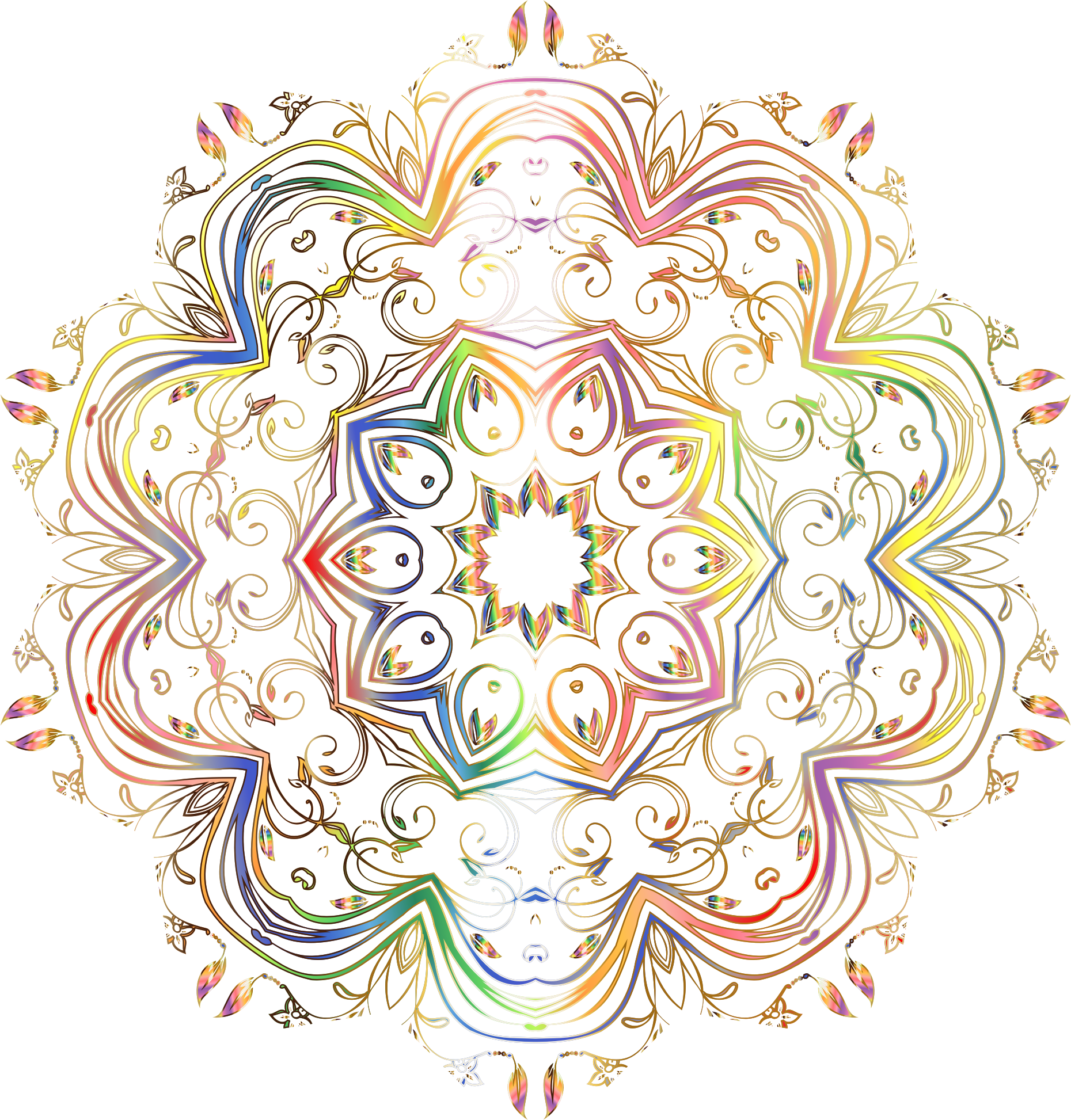 - Abstract Art Chromatic Colorful Decorative Floral Flourish Flower Geometric Gold Metallic Ornamental Prismatic Rainbow Shiny