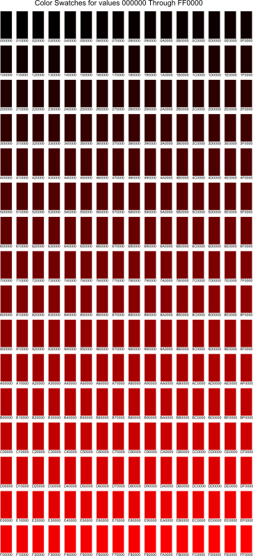 A swatch showing all values of pure red from 0 to 255. Is a smaller version of another swatch I did
