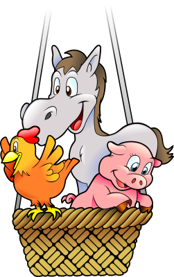 Some farm's animals in a balloon's basket from a abandoned project.
