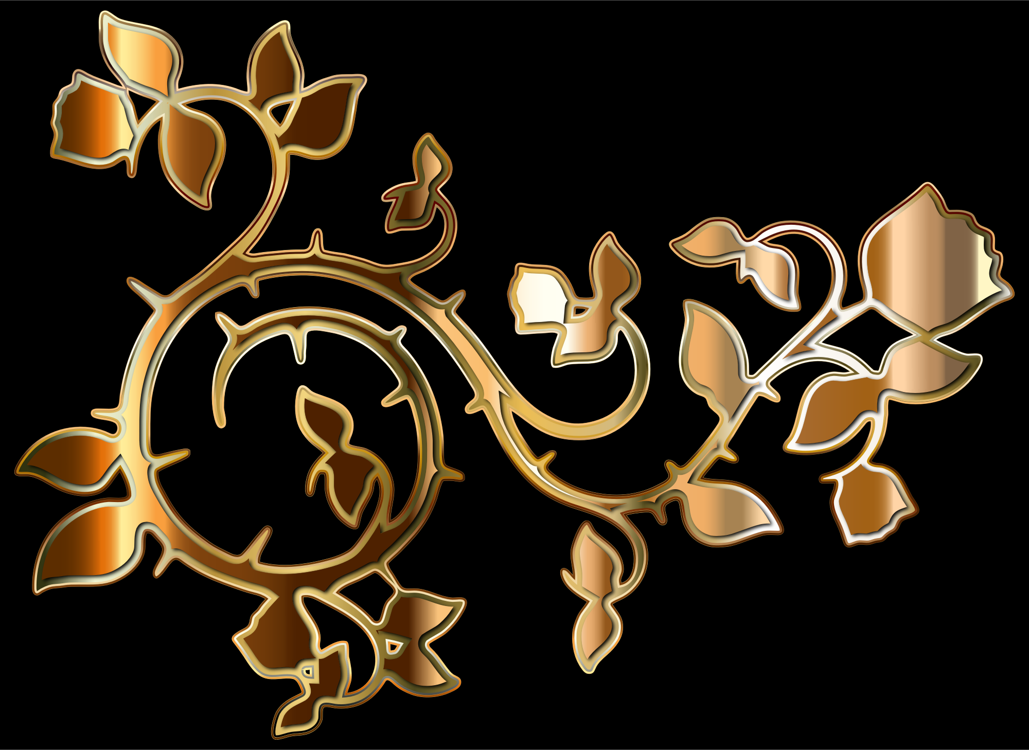Gold Roses And Vines Silhouette Enhanced