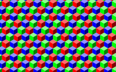 Seamless RGB Isometric Cubes Pattern. A seamless pattern that includes the original tile (go to Objects / Pattern / Pattern To Objects in Inkscape's menu to extract it).