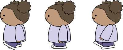 Three views of a girl walking, seen from the side.