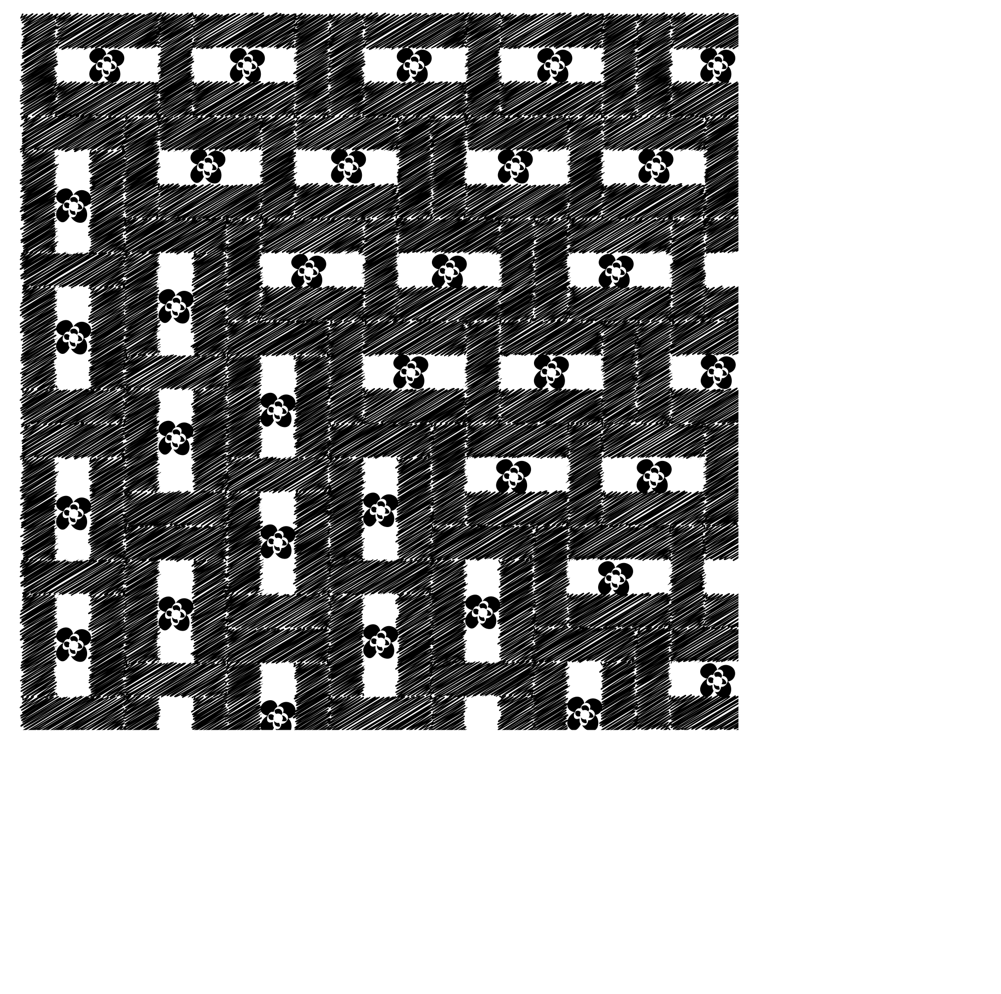 A pattern made of flowers and rectangular scribbles