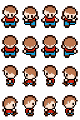 Another sprite sheet that I made. Has the basic movements of up, down, left, and right. The animation looks a lot better than my previous sprite sheet. Consider this a template that anyone can use to make other sprites. I encourage you to try and make different characters with this example and share them on openclipart. :)
