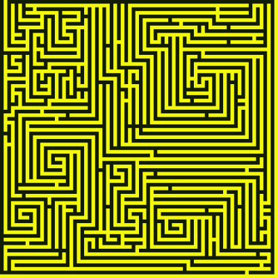 A spiral maze. Don’t be deceived by its long lines into thinking it is easy to solve. But don’t think it’s too hard, either (after all, it’s relatively small).