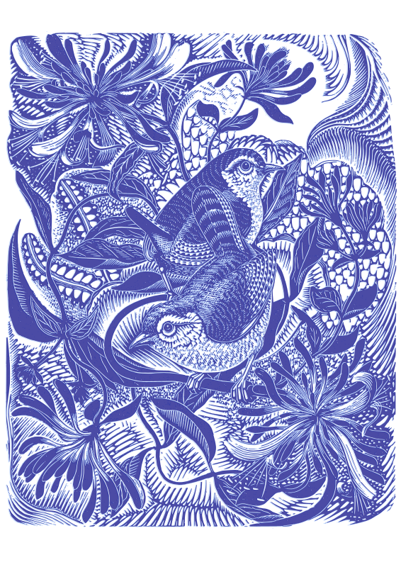 Vintage birds in forest (blur effect).