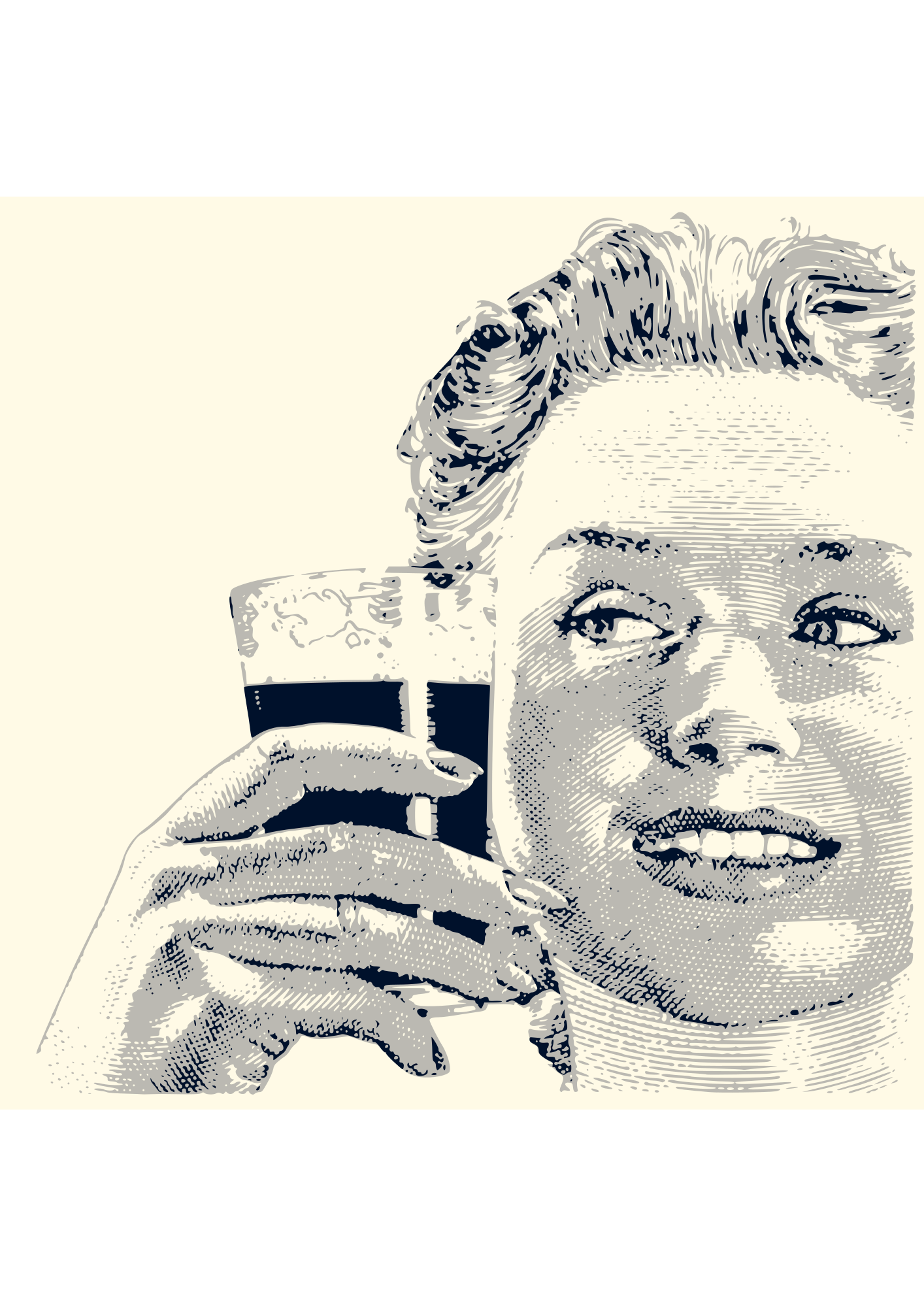 A vintage happy woman drinking - Framed.