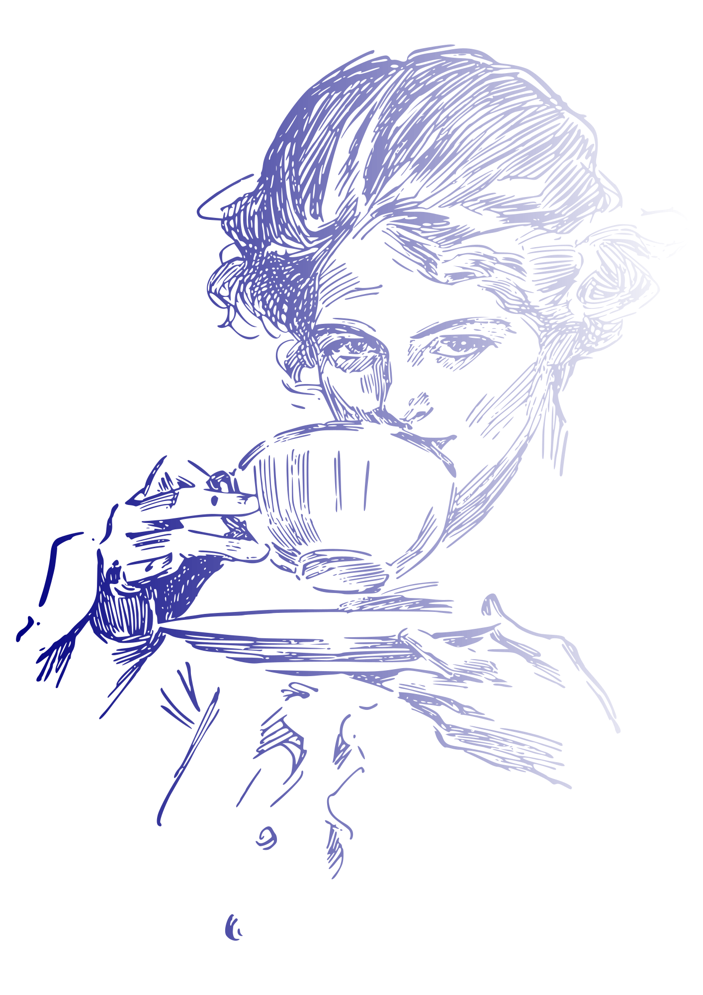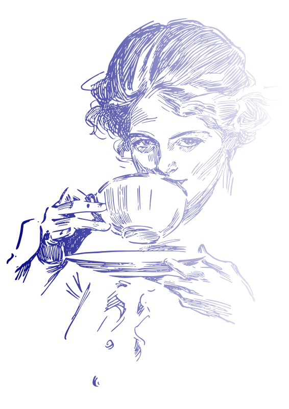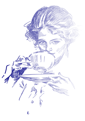 A vintage woman drinking coffee or tea.