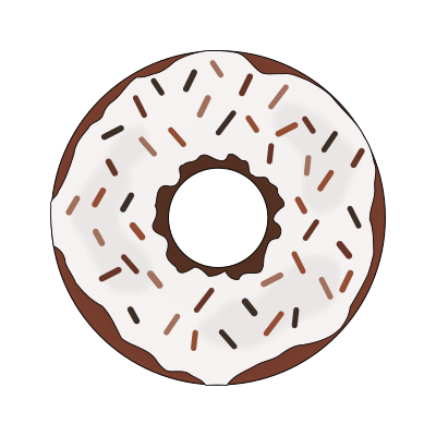 A chocolate donut with white frosting and brown sprinkles.
