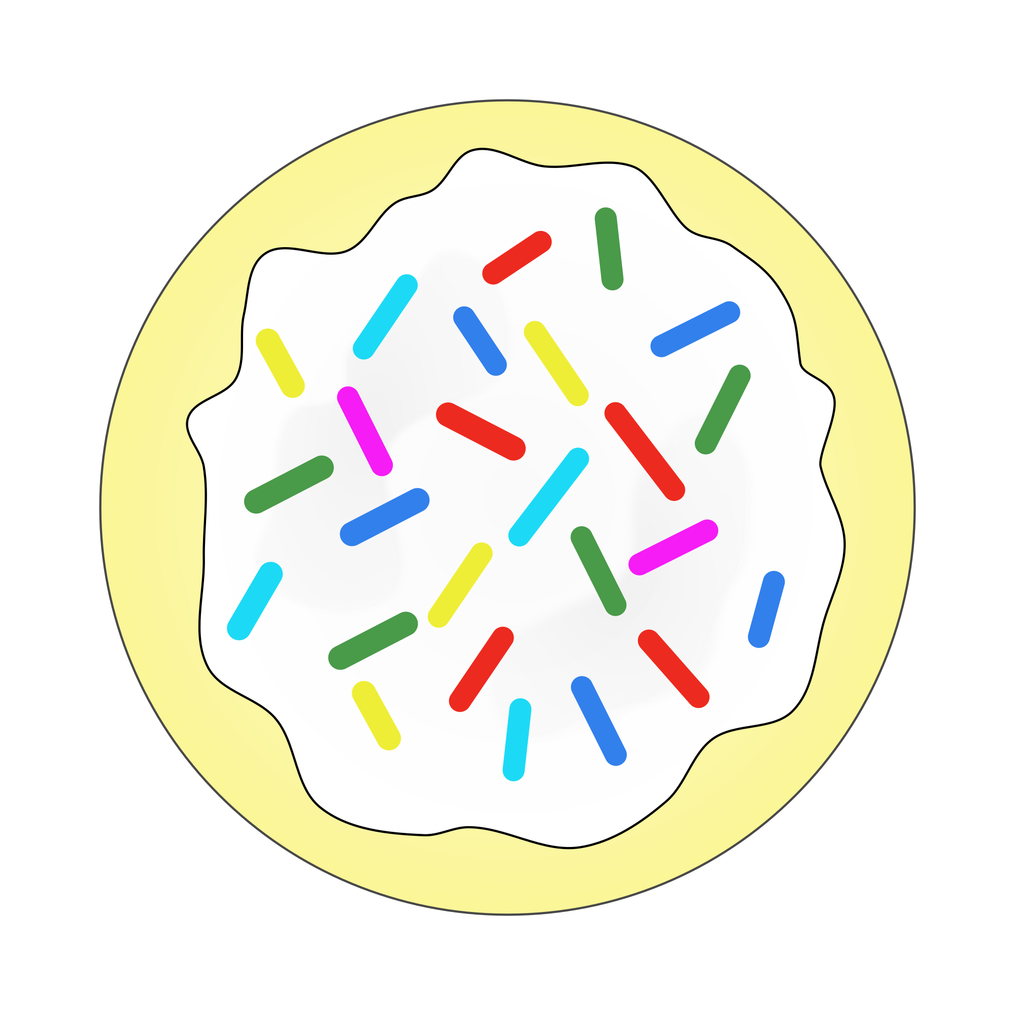 A solid version. A sugar cookie with white frosting and rainbow sprinkles.