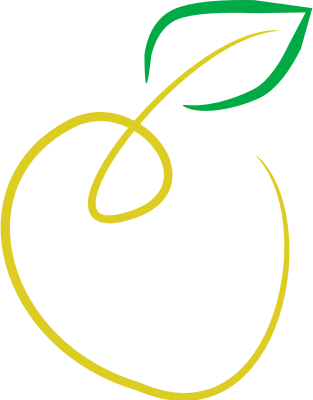 Brush drawing of a yellow apple.
