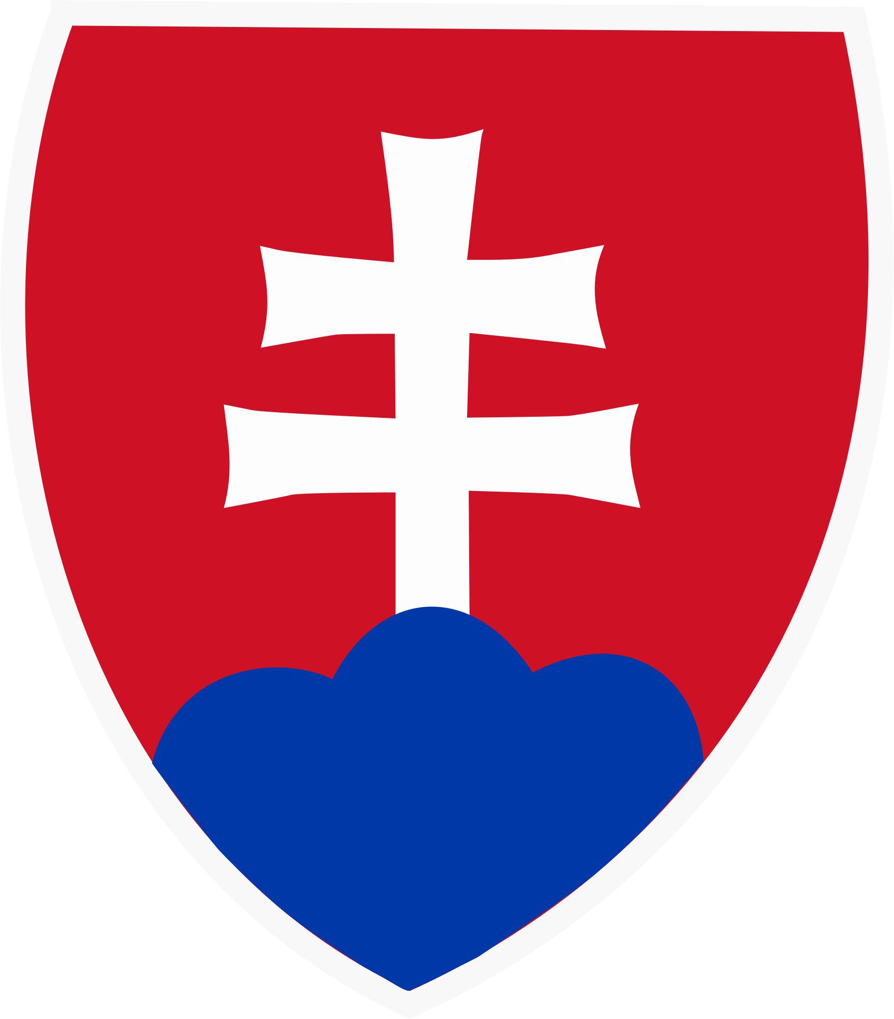 Taken from the Flag of Slovakia, by Svornik (see https://openclipart.org/detail/142099/slovakia) and modified to make the white stroke surrounding it visible even on a white background by changing it from pure white to 97% white. On the other hand, I changed the color of the Cyrillo-Methodian cross to 99% white to make it stand out from the red and blue surrounding it.