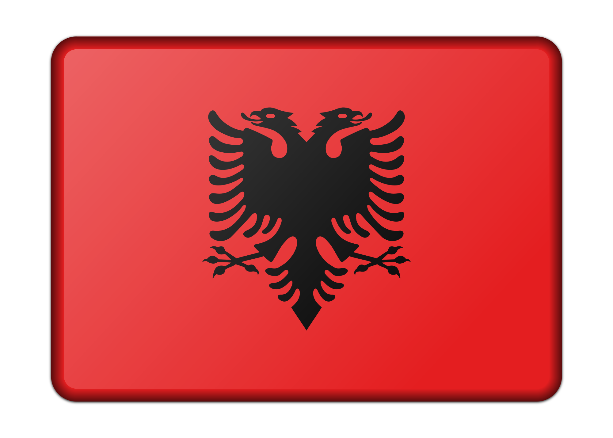 A bevelled version of the flag of Albania. Adapted from a public domain drawing sourced from Wikimedia Commons.