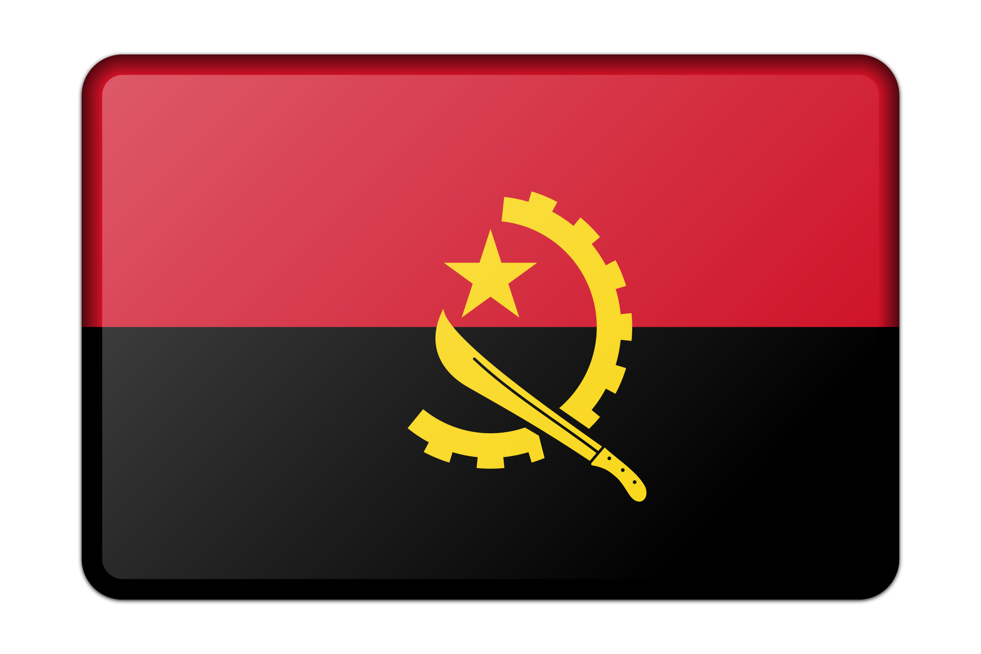 A bevelled version of the flag of Angola. Adapted from a public domain drawing sourced from Wikimedia Commons.