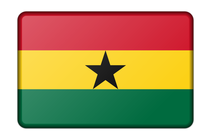 A bevelled version of the flag of Ghana. Adapted from a public domain drawing sourced from Wikimedia Commons