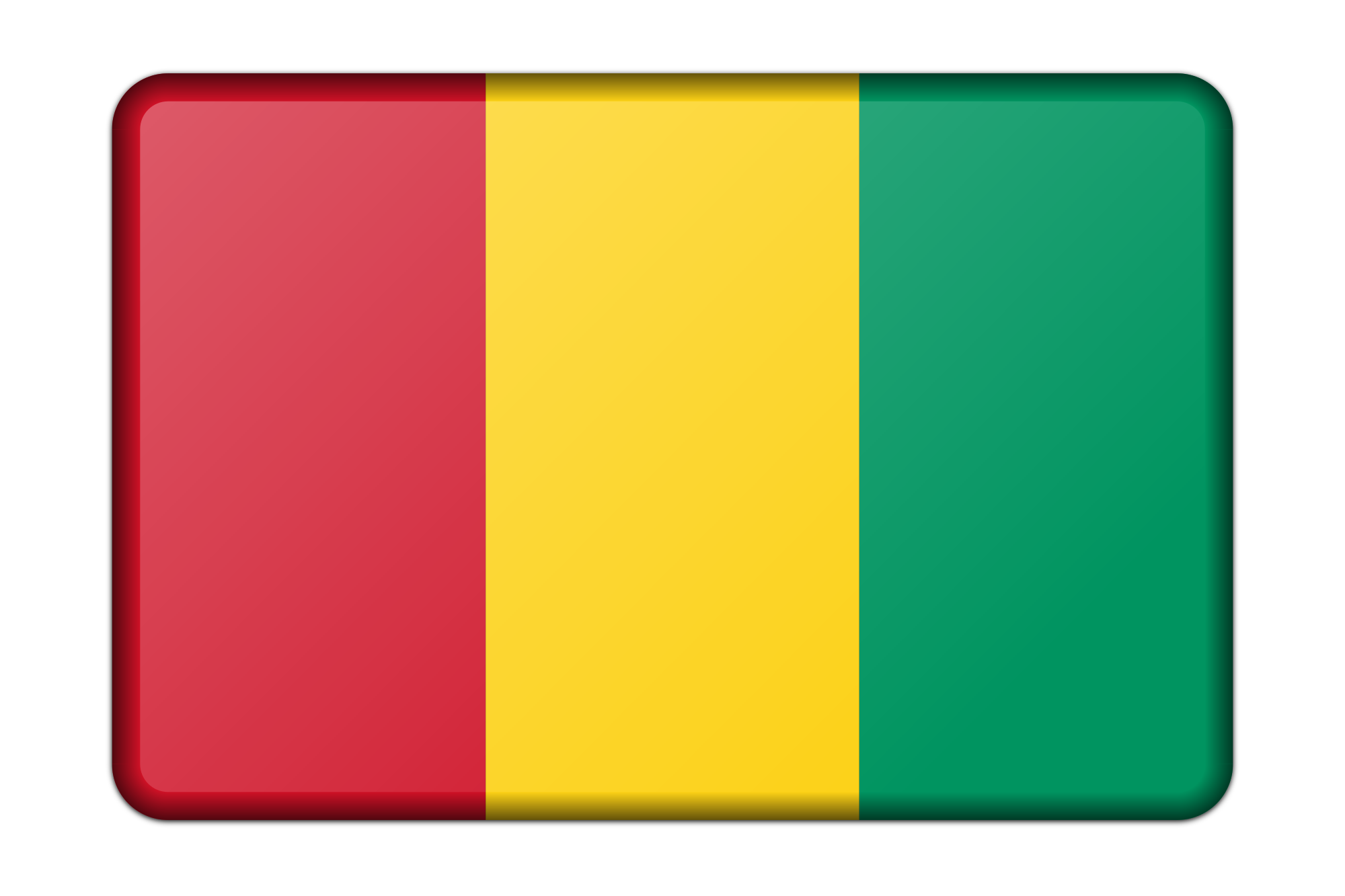 A bevelled version of the flag of Guinea. Adapted from a public domain drawing sourced from Wikimedia Commons