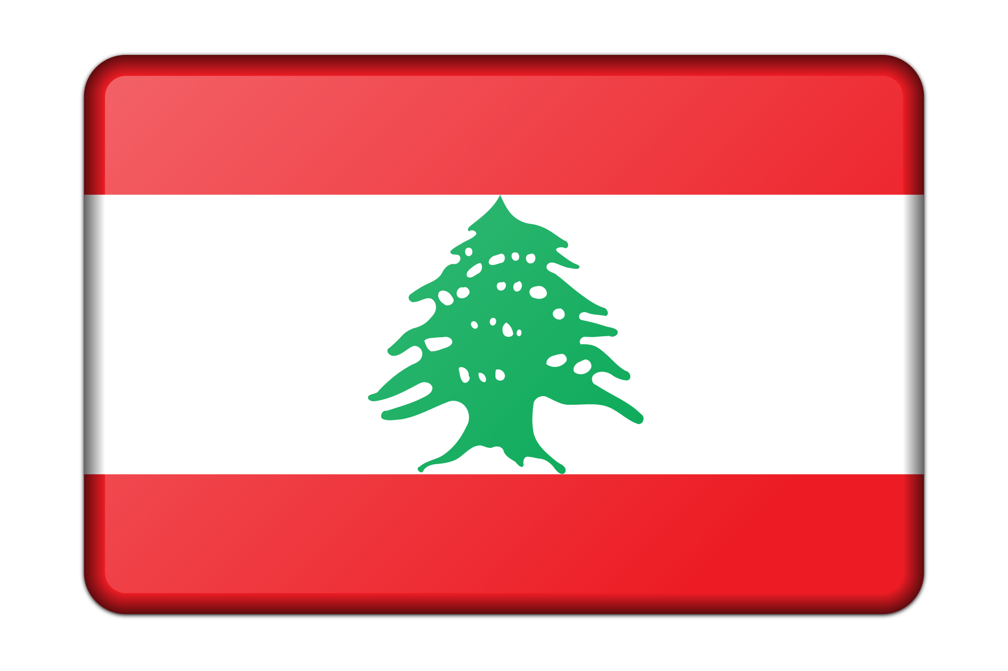 A bevelled version of the flag of Lebanon. Adapted from a public domain drawing sourced from Wikimedia Commons